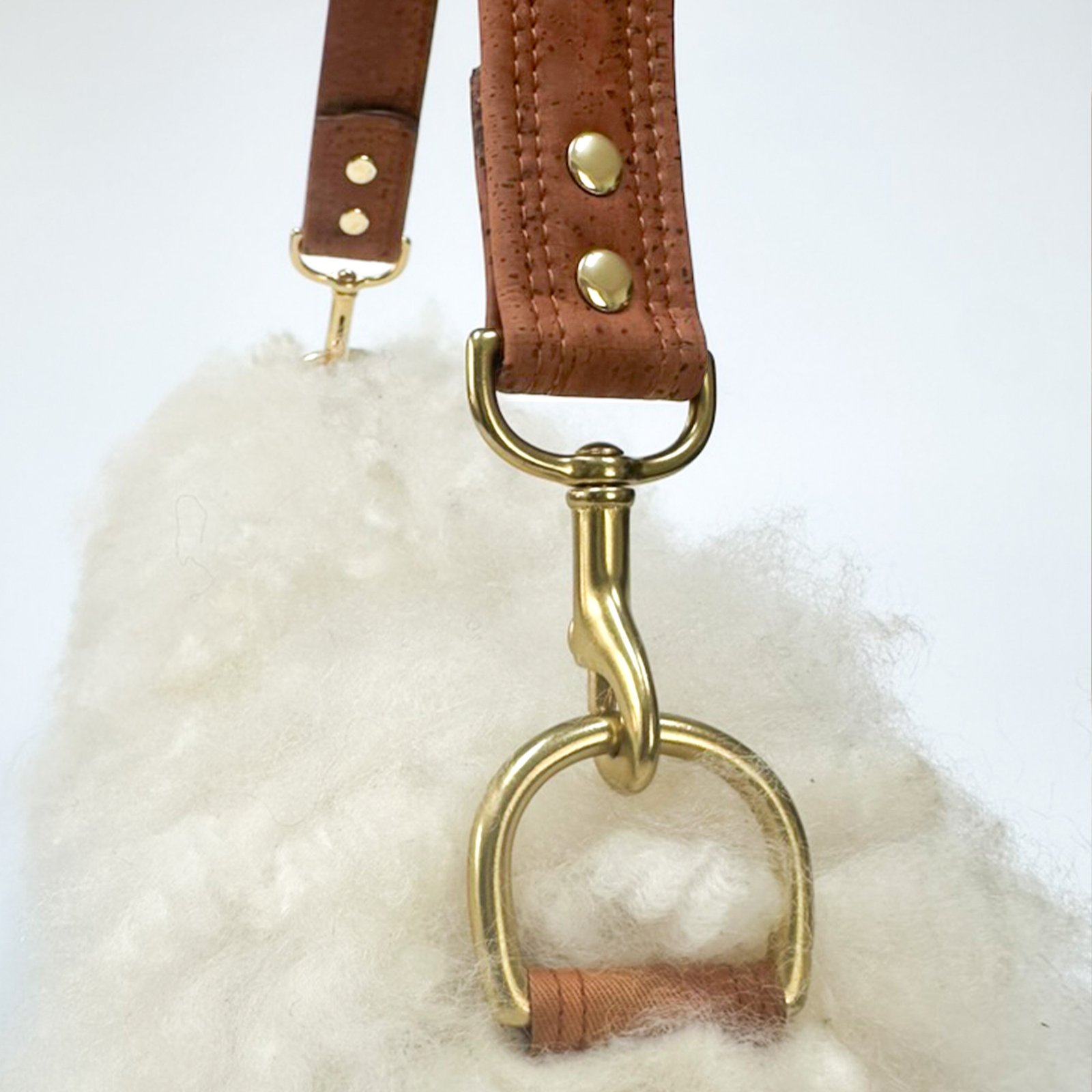 It brings an earthy grounding and quiet strength, balancing the airy volume of the fleece with a tactile, organic elegance.
